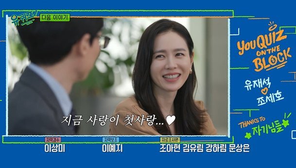 마지막 출연자는 배우 손예진이었다. ‘내 머릿속 영원한 국민 첫사랑’으로 소개를 받은 손예진은 “국민 첫사랑의 첫사랑이 궁금하다”라는 질문에 “지금 사랑이 첫사랑이다”라고 답하며 수줍게 웃었다. 현재 손예진은 배우 현빈과 공개 열애 중이다.